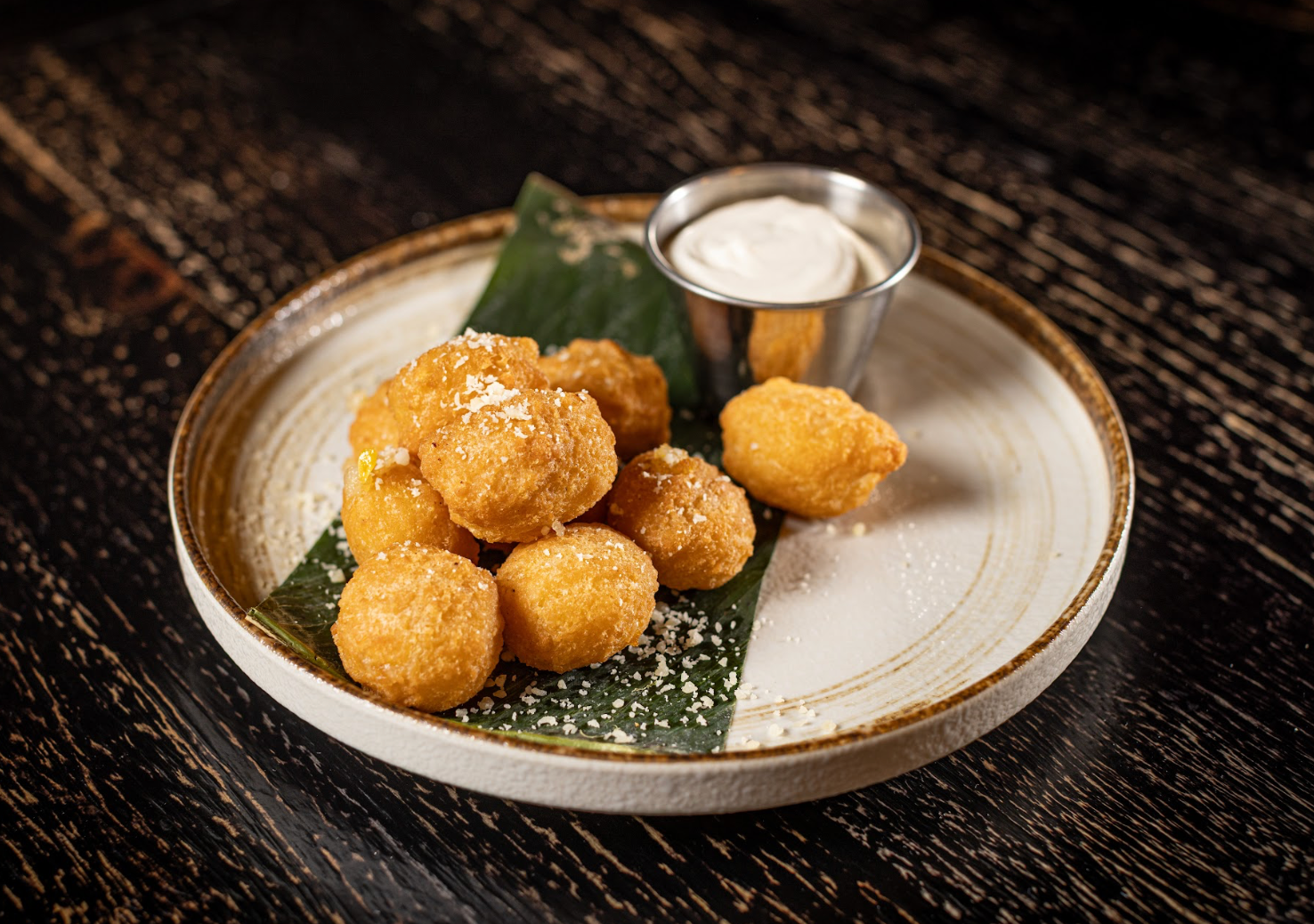 Sweet corn fritters, parmesan cheese, crema fresca