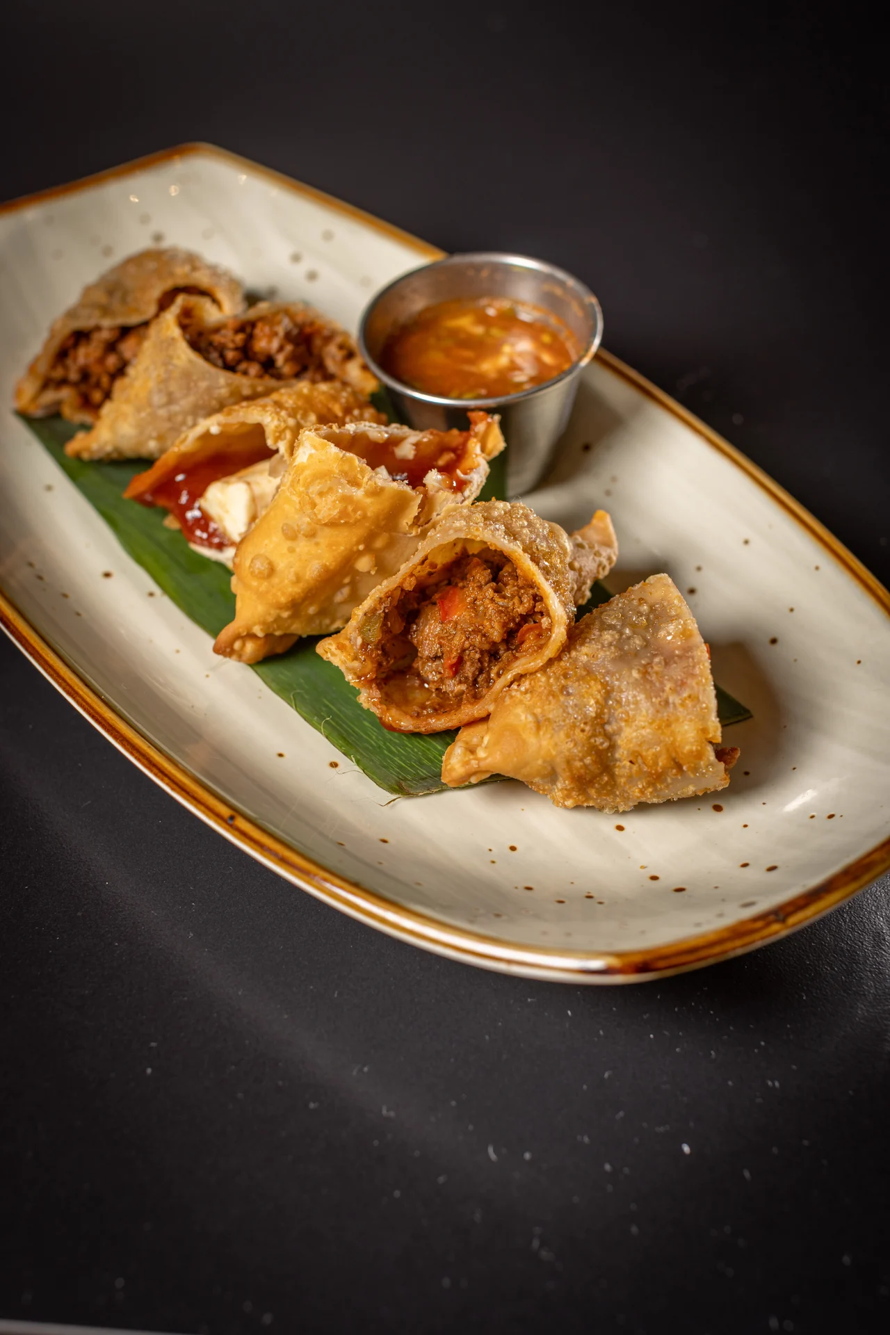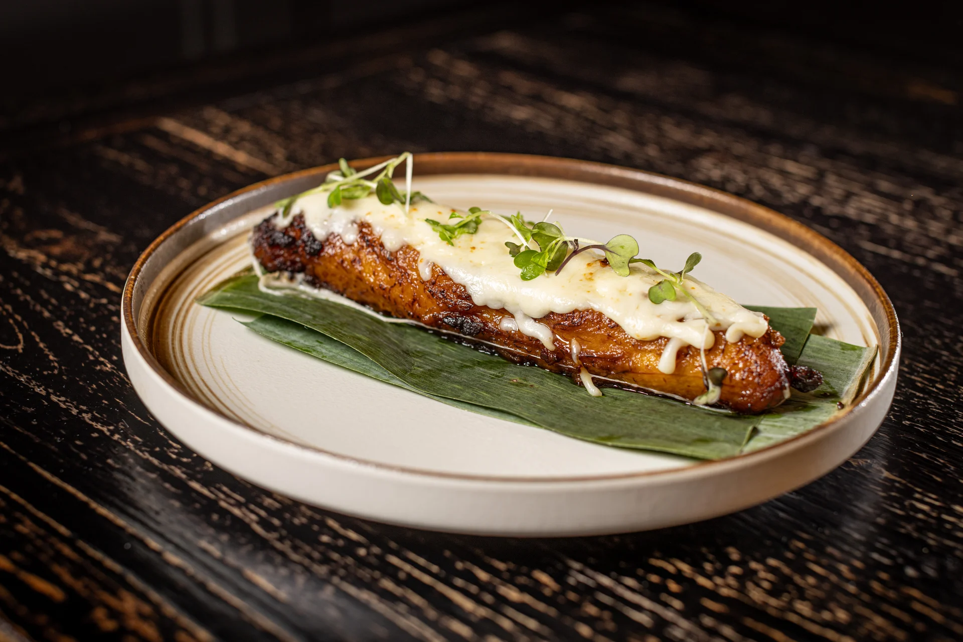Fried sweet plantain, beef picadillo, mozzarella cheese