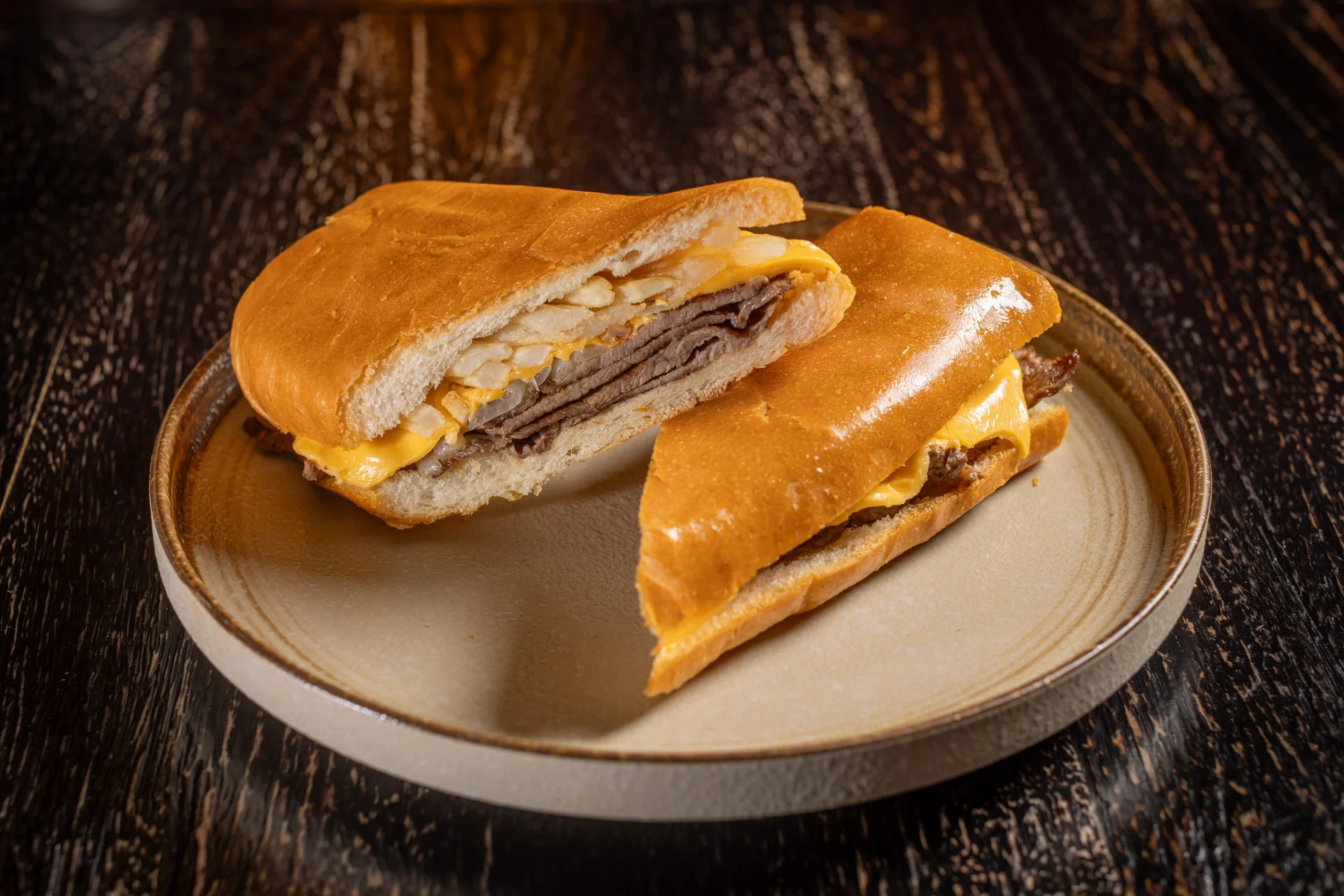 Grilled thin top sirloin steak, lettuce, tomatoes, onions and potatoes sticks, pressed on fresh Cuban bread