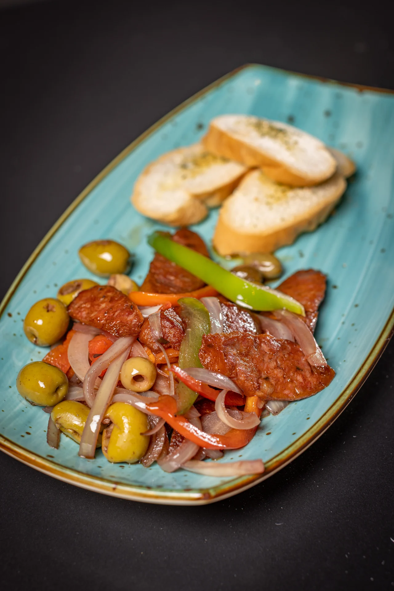 Sauteed spanish chorizo, bell peppers, onions, cuban toast points