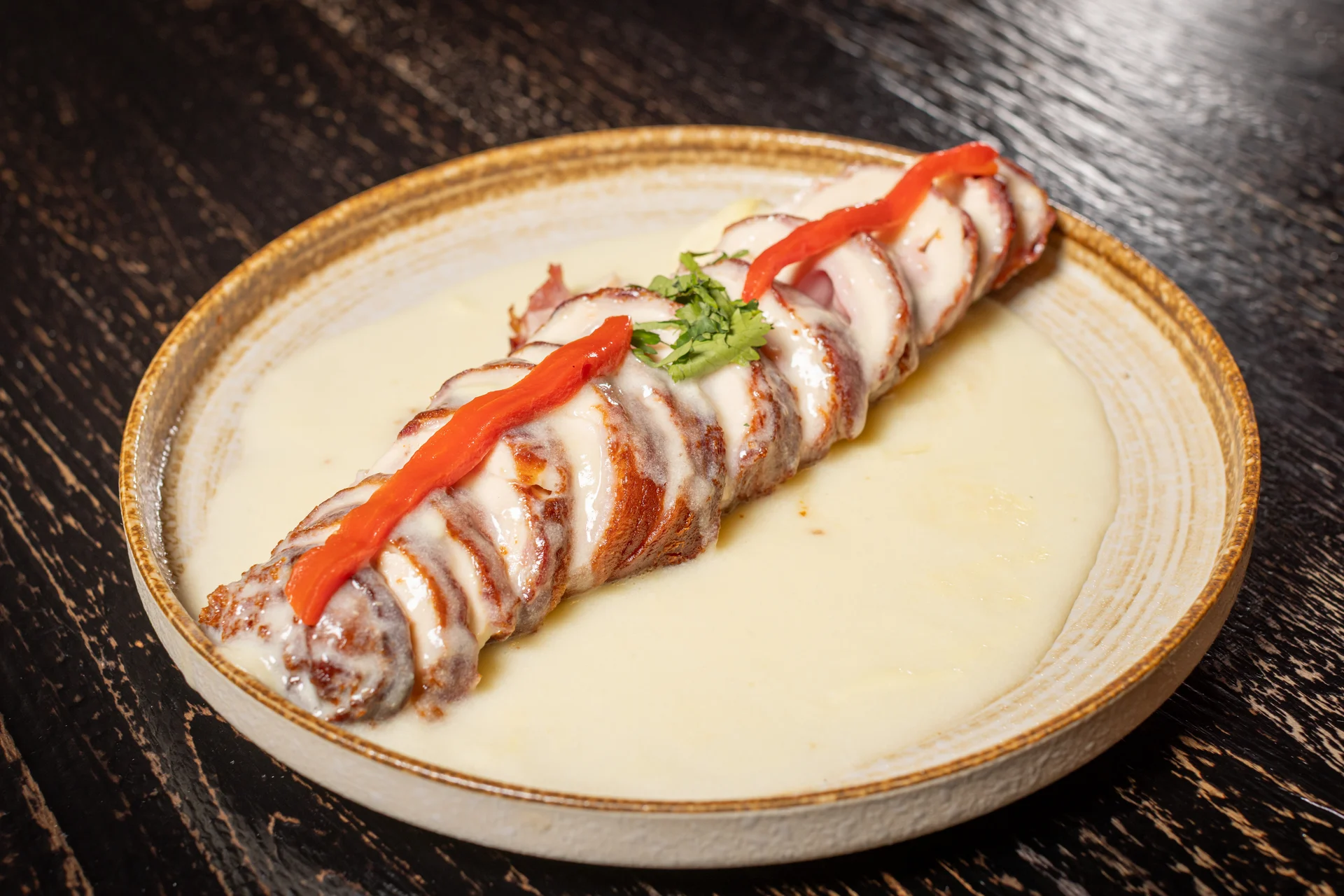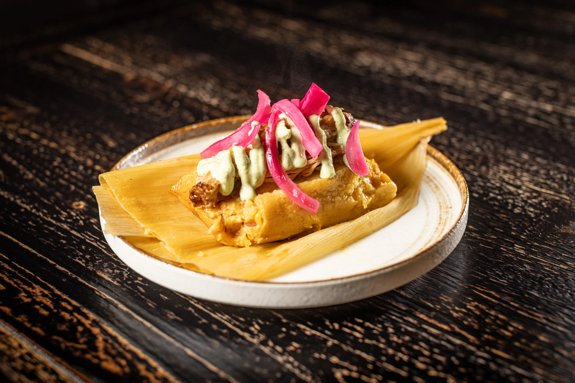 Cuban tamale, roasted pork, pickled red onions, cilantro aioli