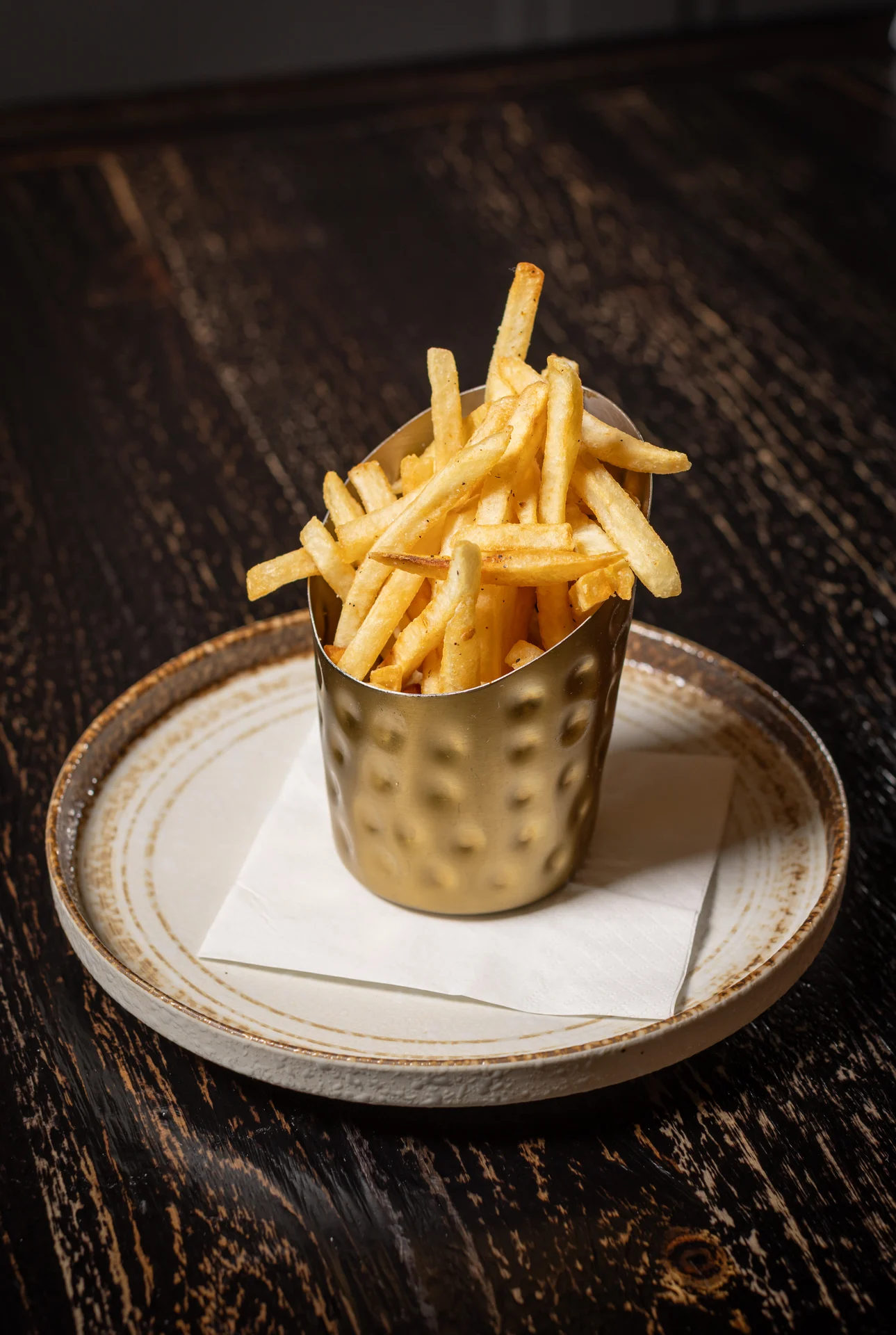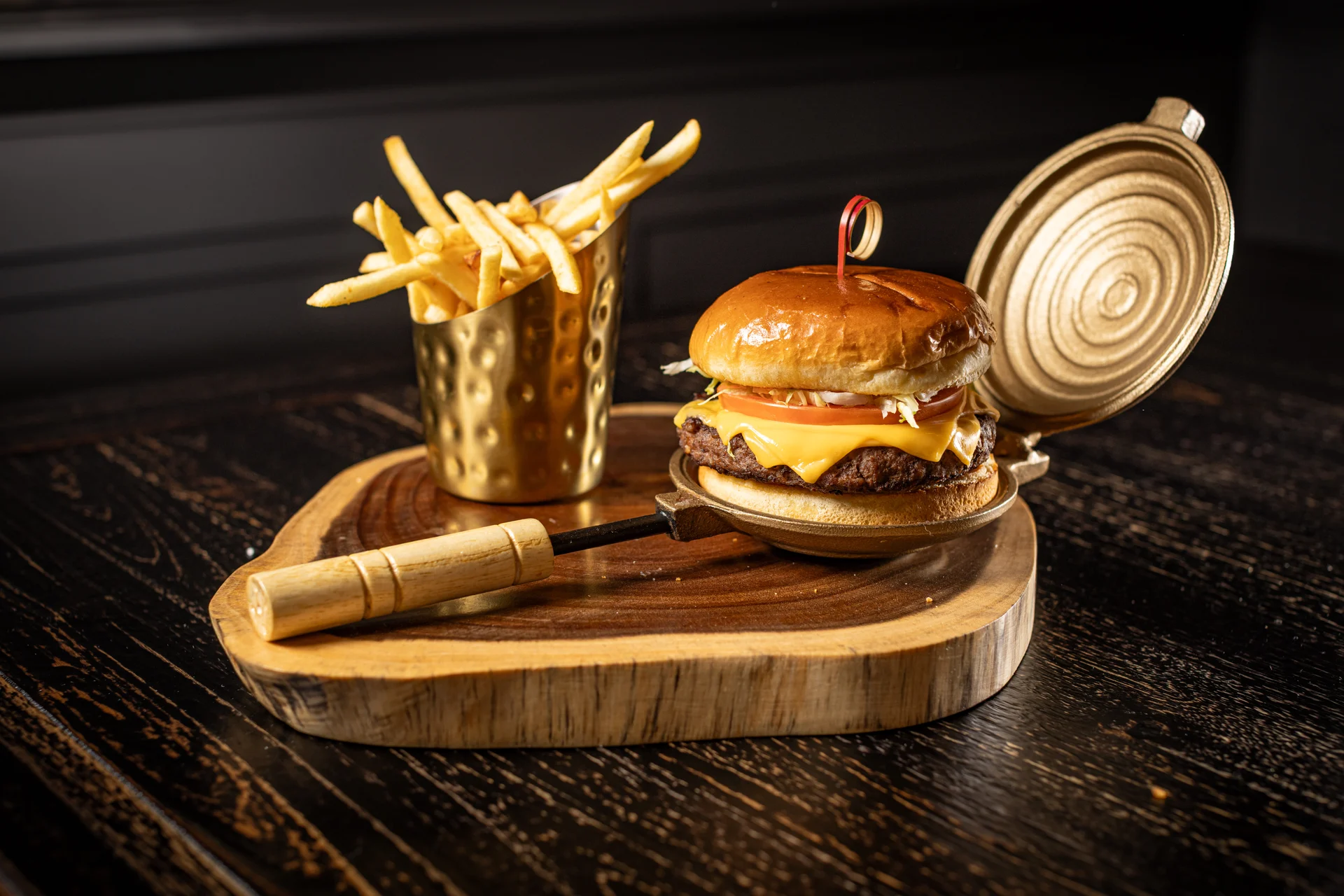 American cheese, brioche bun, French fries