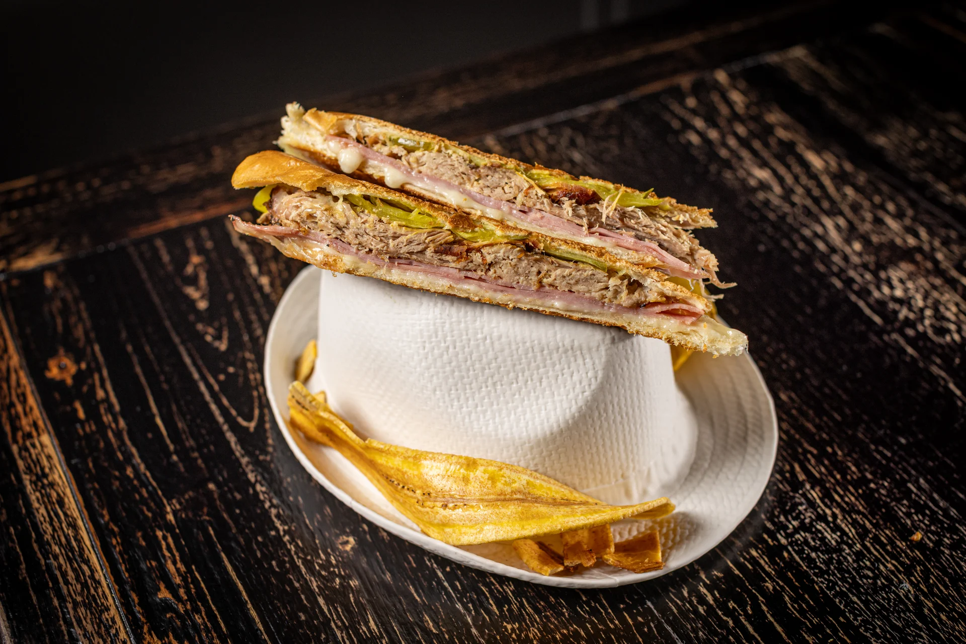 Our classic pressed sandwich made with our delicious slow roasted pork, ham, pickles, Swiss cheese served on fresh Cuban bread