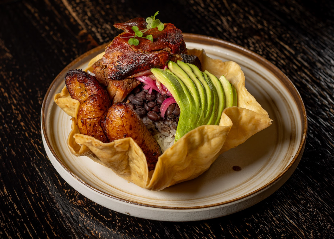 Hass avocado, onion, cilantro, fresh lime, minced jalapeño, evoo served with crispy plantain chips. Add: Crispy Pork Belly (+4)