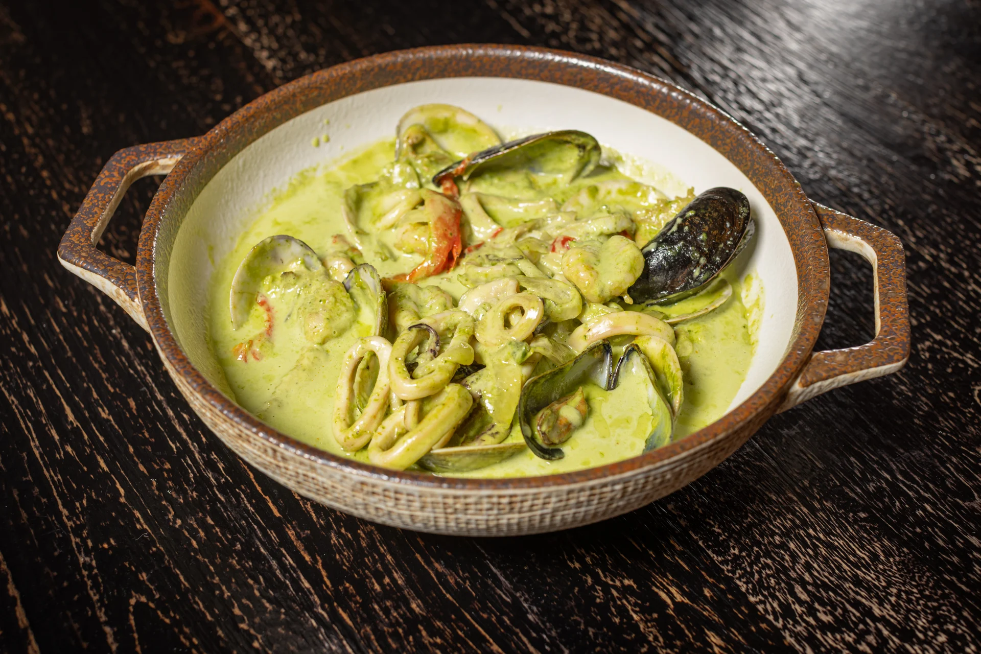 Shrimp, fish, calamari, clams, mussels. Prepared with your choice of sauce: enchilado sauce - tomato, pepper and onion creole sauce, salsa verde - creamy spinach garlic green sauce, white wine sauce - olive oil. White wine, lemon, hint of garlic. Add lobster tail (+10)