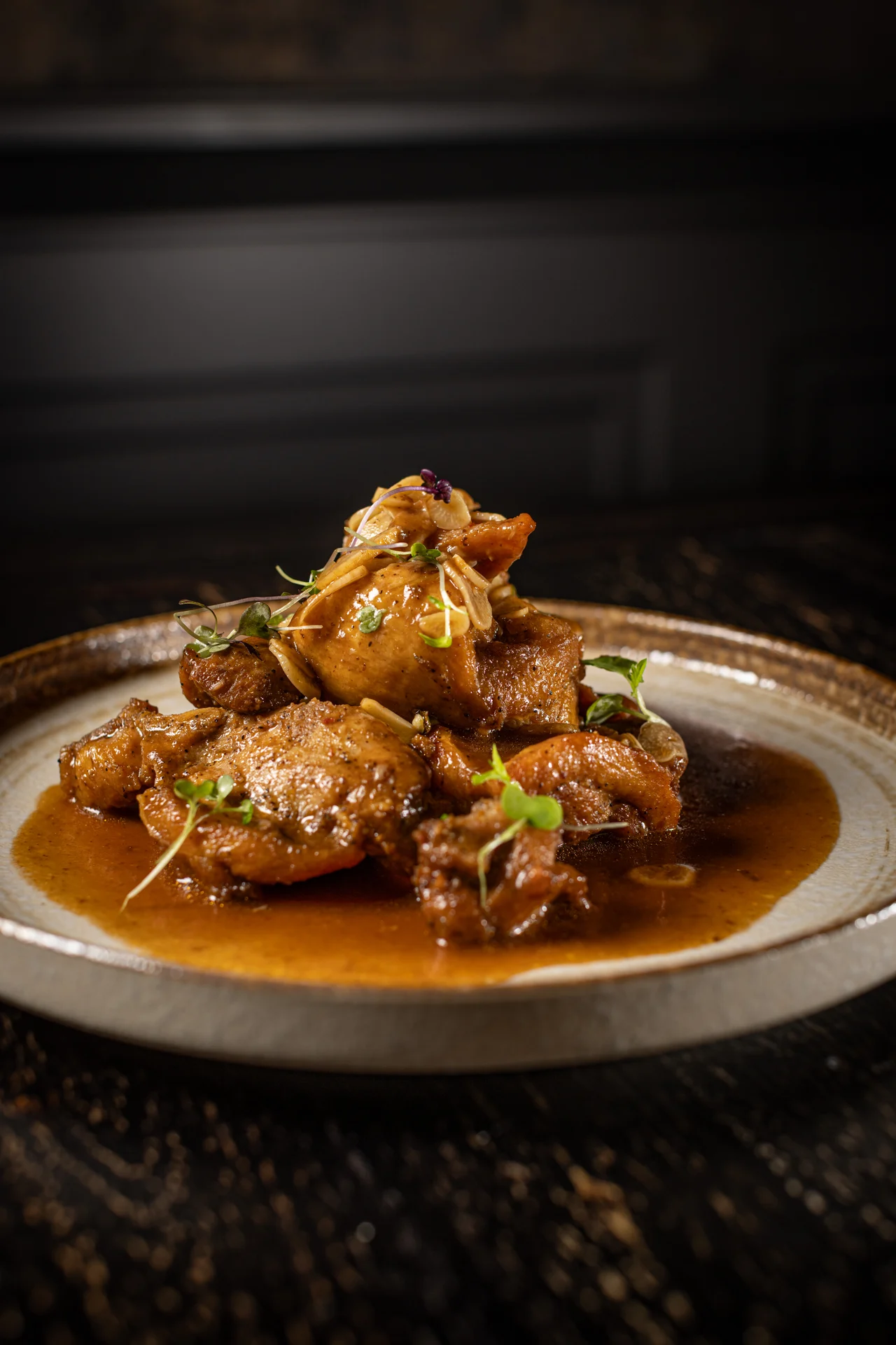 Braised shredded chicken, creole sauce, olives, peppers, onions