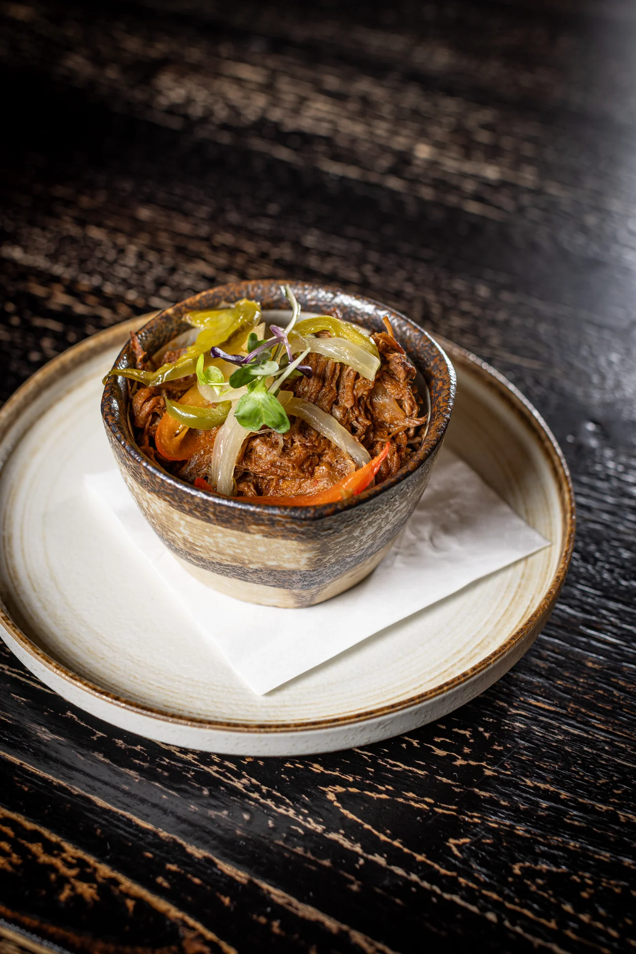 Braised shredded beef, tomatoes, bell peppers, sherry, olives